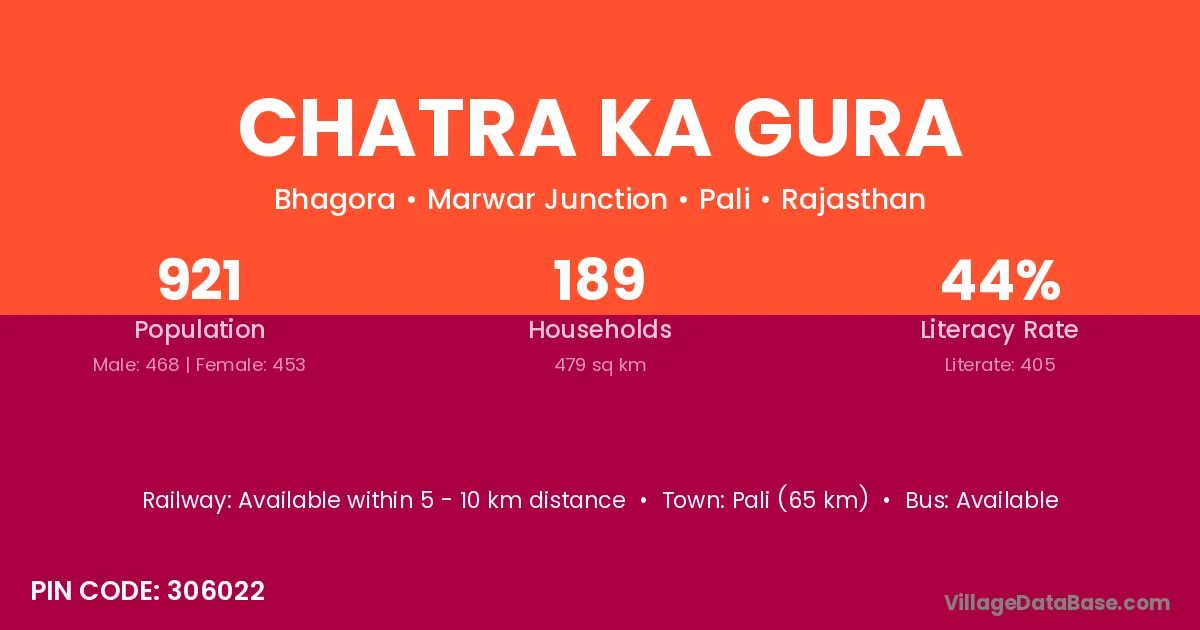 Pali (65 km) is the nearest town to Chatra Ka Gura village for major economic activities and is located approximately 65 km away.