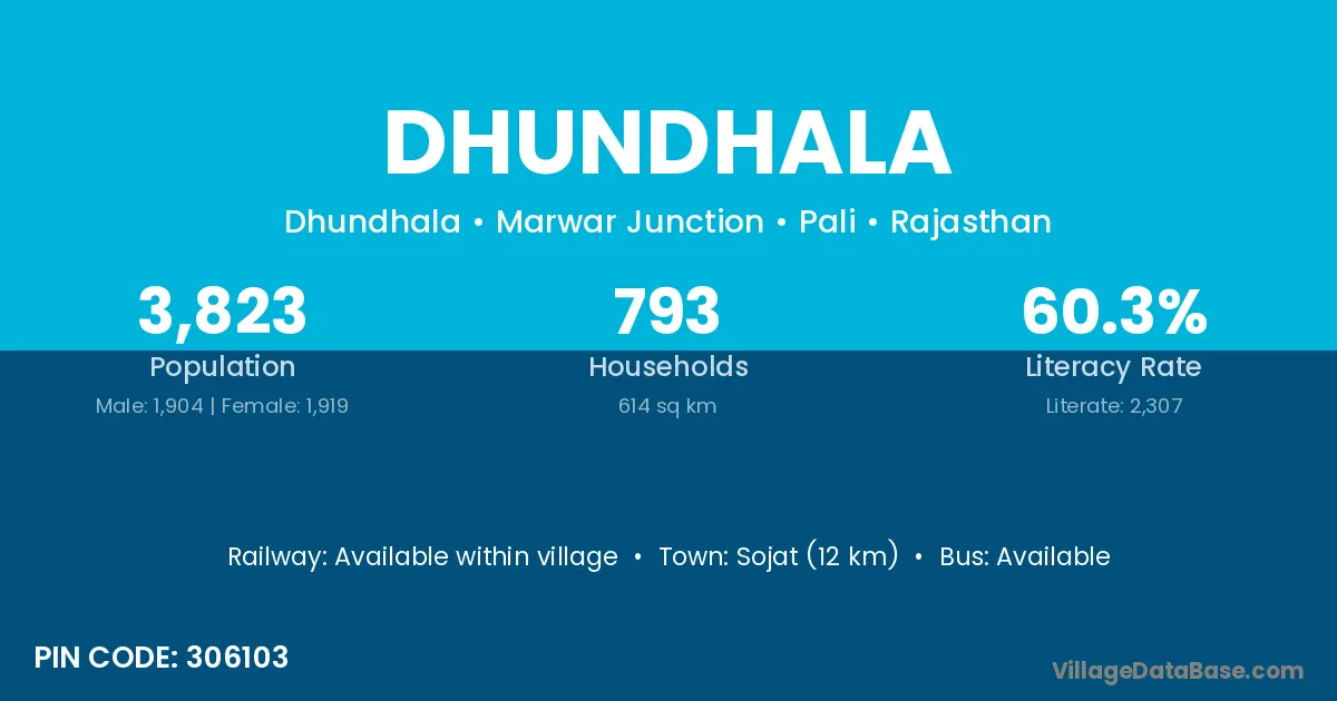 Sojat (12 km) is the nearest town to Dhundhala village for major economic activities and is located approximately 12 km away.