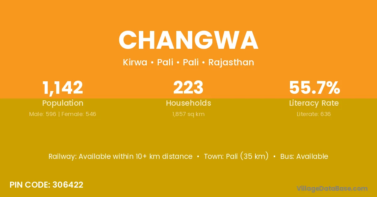 Pali (35 km) is the nearest town to Changwa village for major economic activities and is located approximately 35 km away.