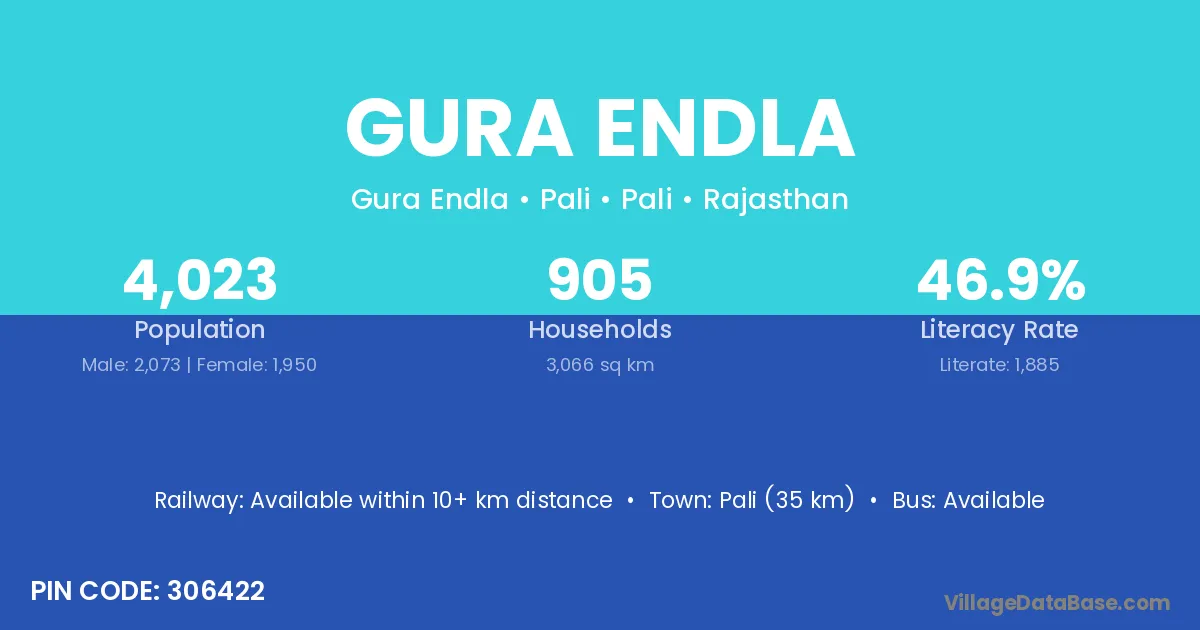 Pali (35 km) is the nearest town to Gura Endla village for major economic activities and is located approximately 35 km away.
