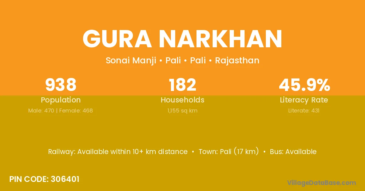 Pali (17 km) is the nearest town to Gura Narkhan village for major economic activities and is located approximately 17 km away.