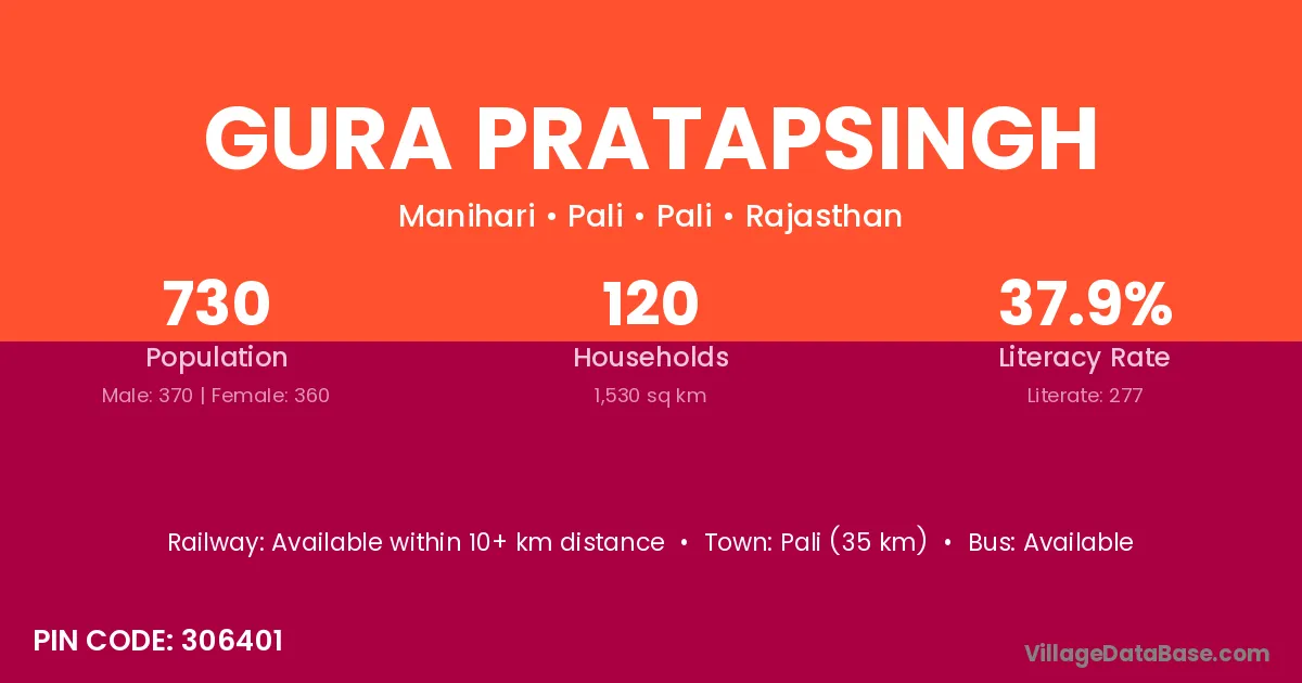Pali (35 km) is the nearest town to Gura Pratapsingh village for major economic activities and is located approximately 35 km away.