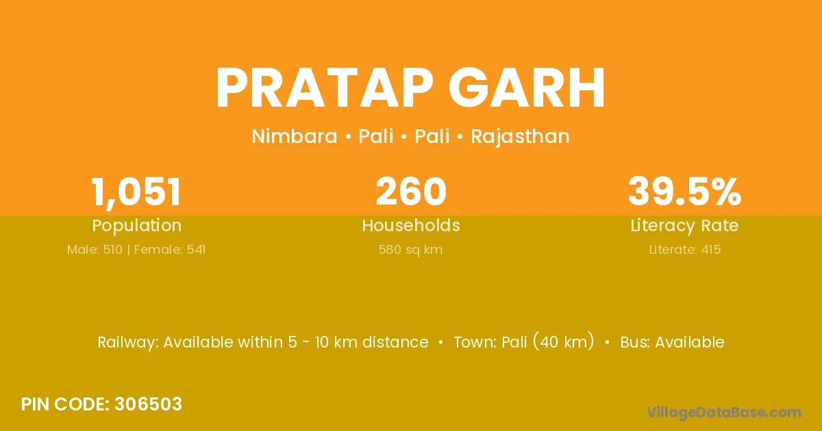 Pali (40 km) is the nearest town to Pratap Garh village for major economic activities and is located approximately 40 km away.