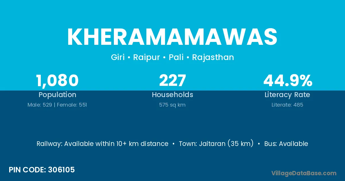 Jaitaran (35 km) is the nearest town to Kheramamawas village for major economic activities and is located approximately 35 km away.