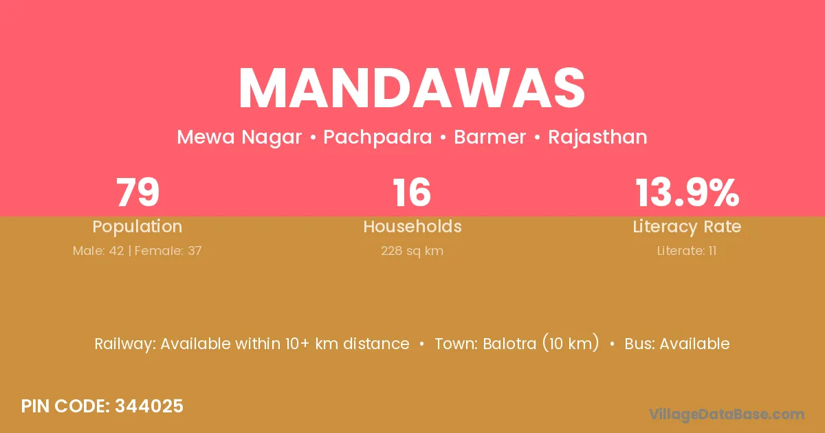 Pali (45 km) is the nearest town to Mandawas village for major economic activities and is located approximately 45 km away.