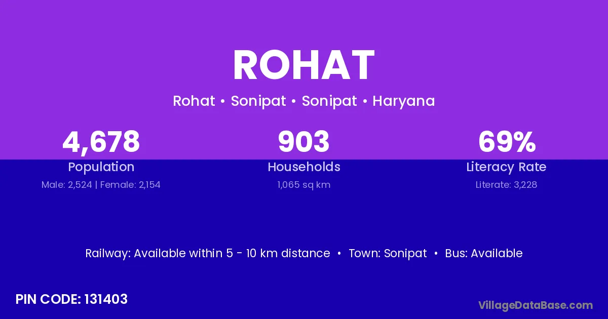 Rohat village has a total population of 6,980 people, of which 3,622 are males and 3,358 are females.