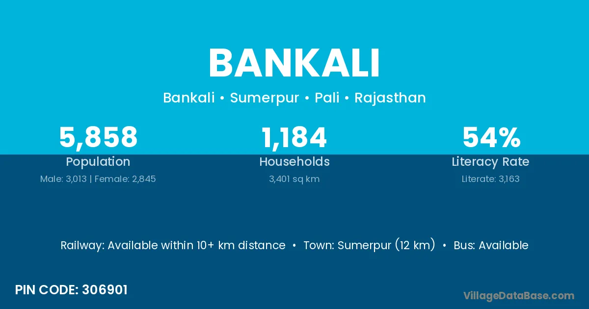 Sumerpur (12 km) is the nearest town to Bankali village for major economic activities and is located approximately 12 km away.