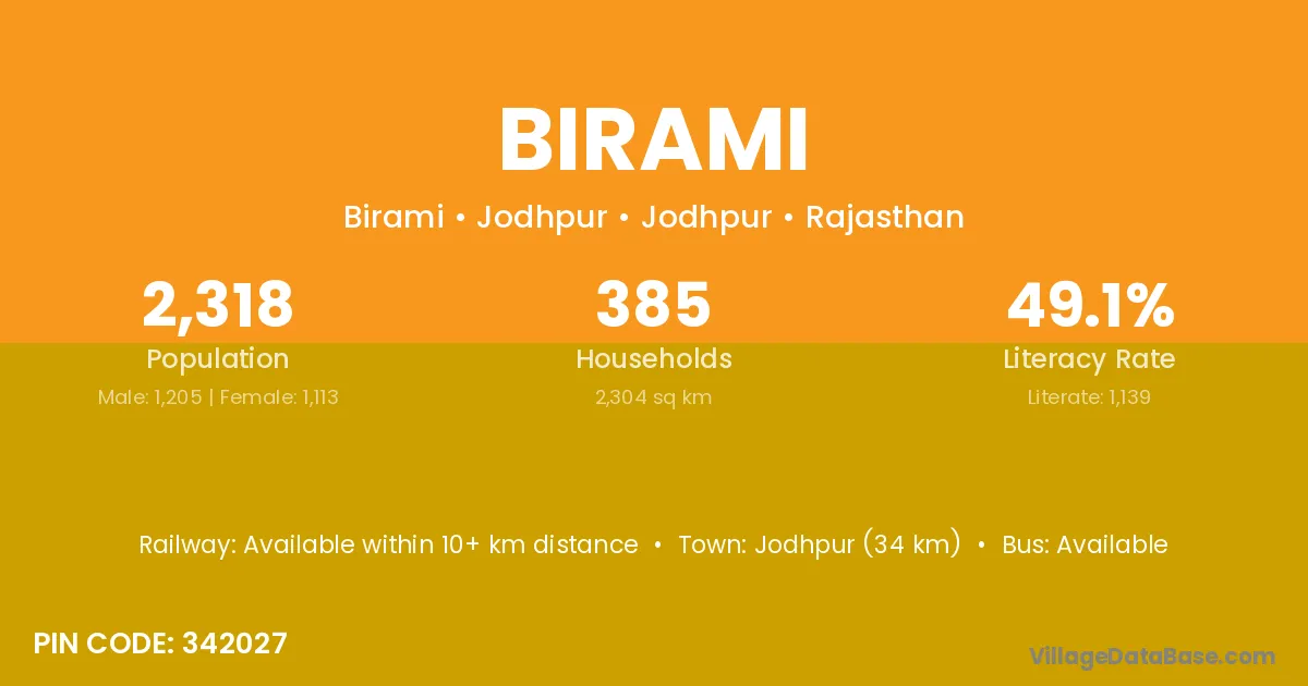 Rani (13 km) is the nearest town to Birami village for major economic activities and is located approximately 13 km away.