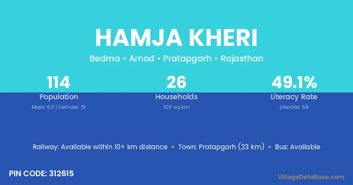 Pratapgarh (23 km) is the nearest town to Hamja Kheri village for major economic activities and is located approximately 23 km away.