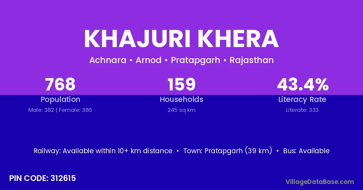 Pratapgarh (39 km) is the nearest town to Khajuri Khera village for major economic activities and is located approximately 39 km away.