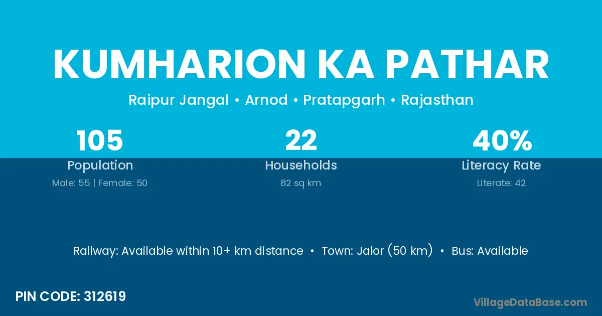 Kumharion Ka Pathar village has a total population of 105 people, of which 55 are males and 50 are females.