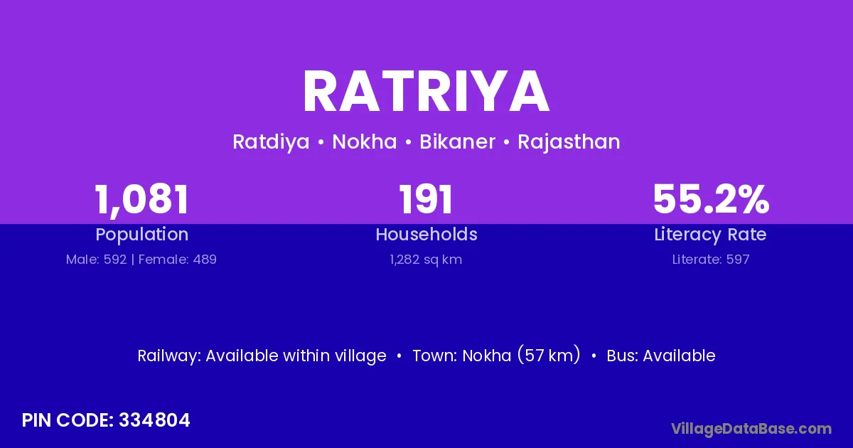 Pratapgarh (21 km) is the nearest town to Ratriya village for major economic activities and is located approximately 21 km away.
