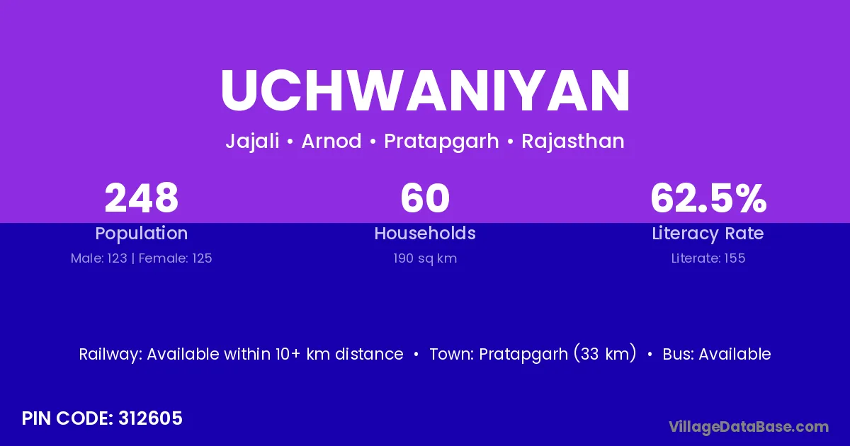 Pratapgarh (33 km) is the nearest town to Uchwaniyan village for major economic activities and is located approximately 33 km away.