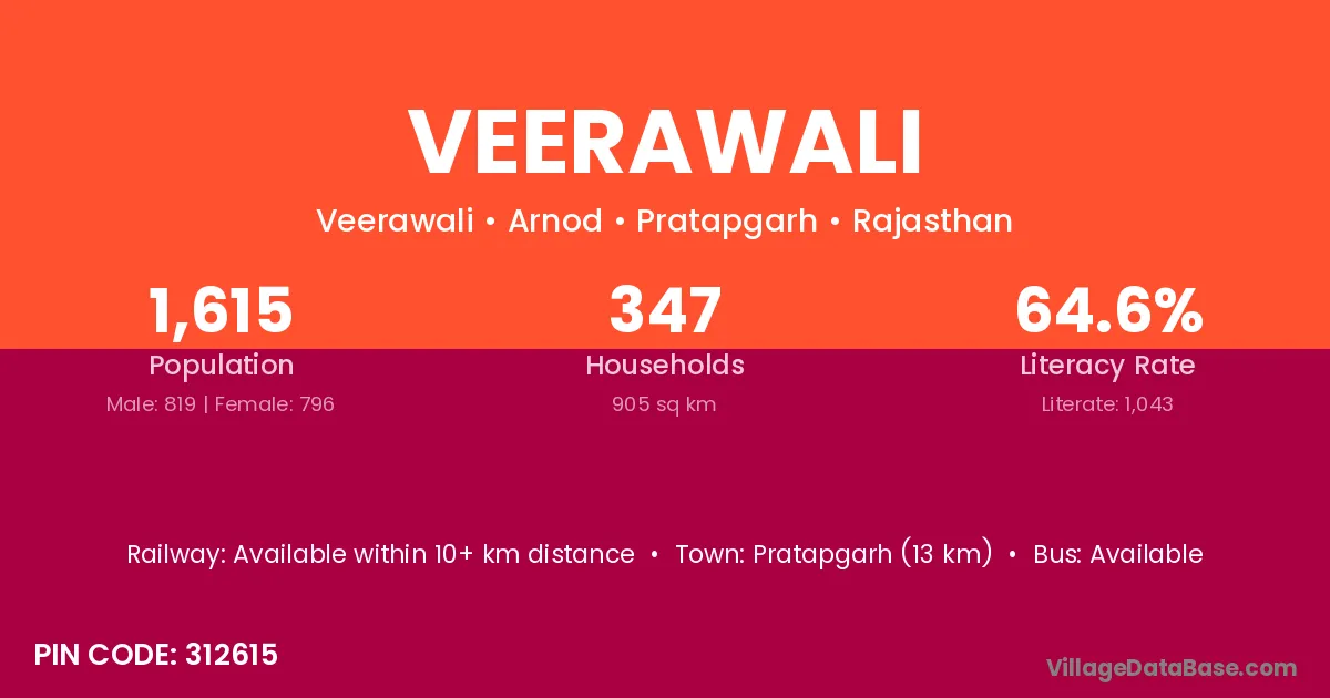 Pratapgarh (13 km) is the nearest town to Veerawali village for major economic activities and is located approximately 13 km away.