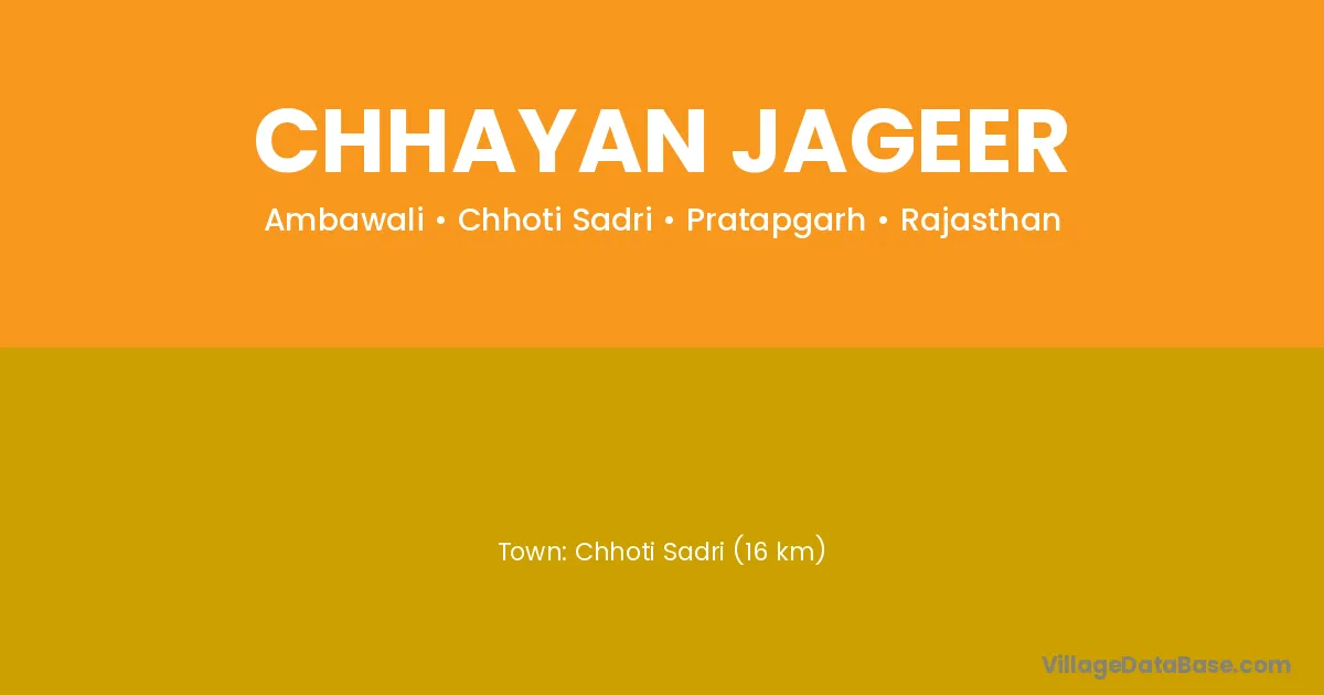 Chhoti Sadri (16 km) is the nearest town to Chhayan Jageer village for major economic activities and is located approximately 16 km away.