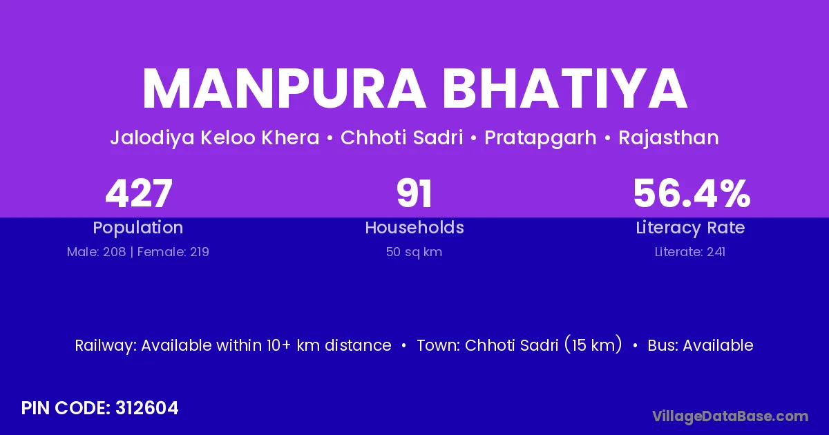 Manpura Bhatiya village has a total population of 427 people, of which 208 are males and 219 are females.