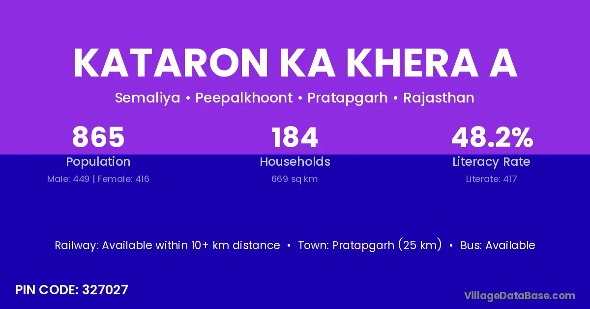 Pratapgarh (25 km) is the nearest town to Kataron Ka Khera A village for major economic activities and is located approximately 25 km away.