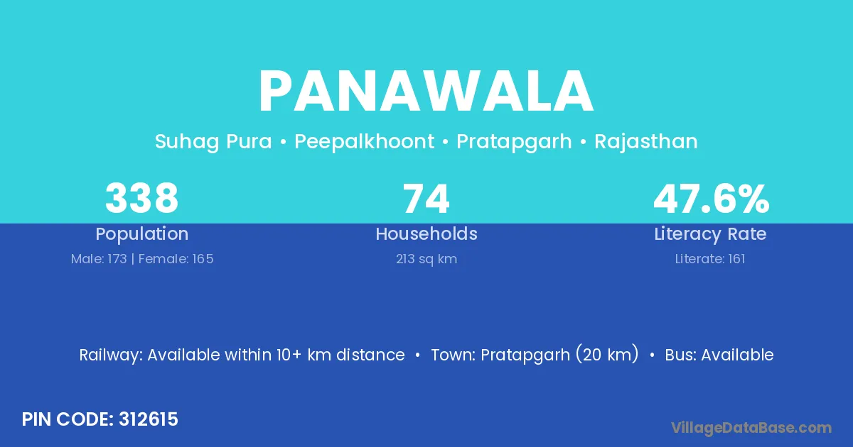 Pratapgarh (20 km) is the nearest town to Panawala village for major economic activities and is located approximately 20 km away.