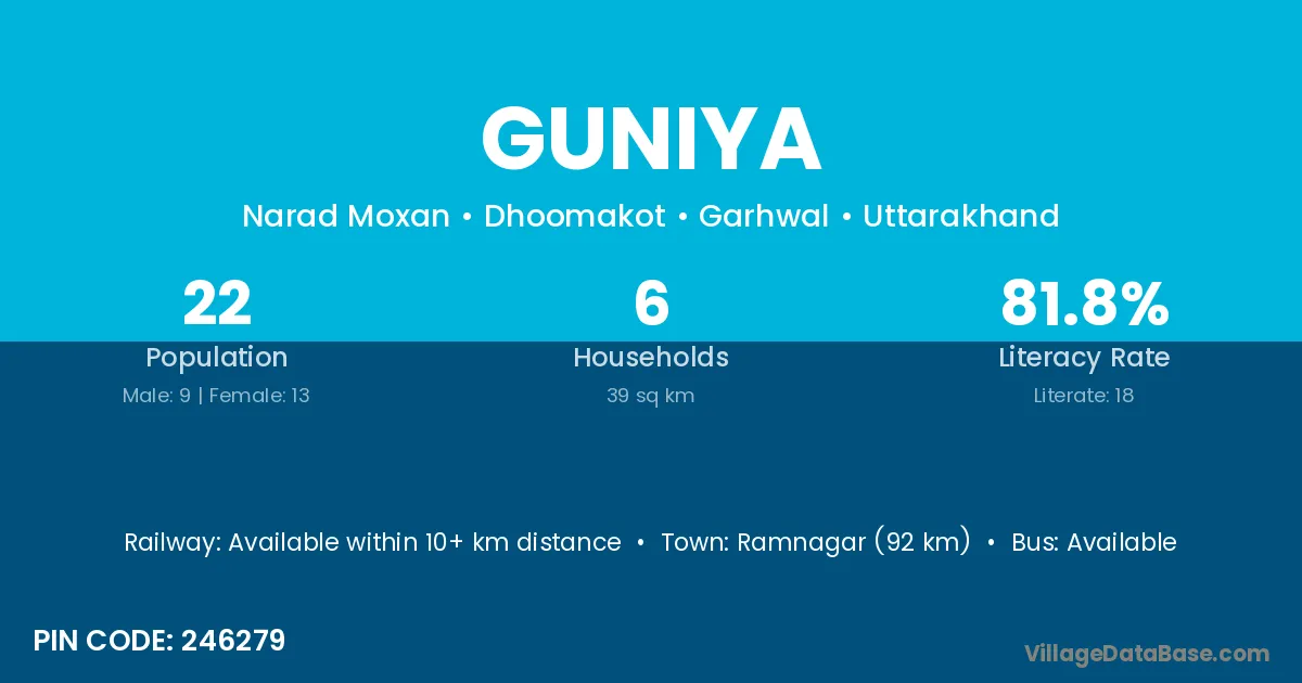 Guniya village has a total population of 446 people, of which 228 are males and 218 are females.
