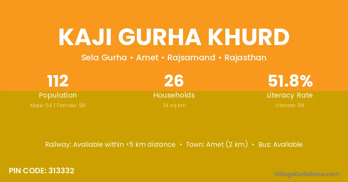 Amet (2 km) is the nearest town to Kaji Gurha Khurd village for major economic activities and is located approximately 2 km away.