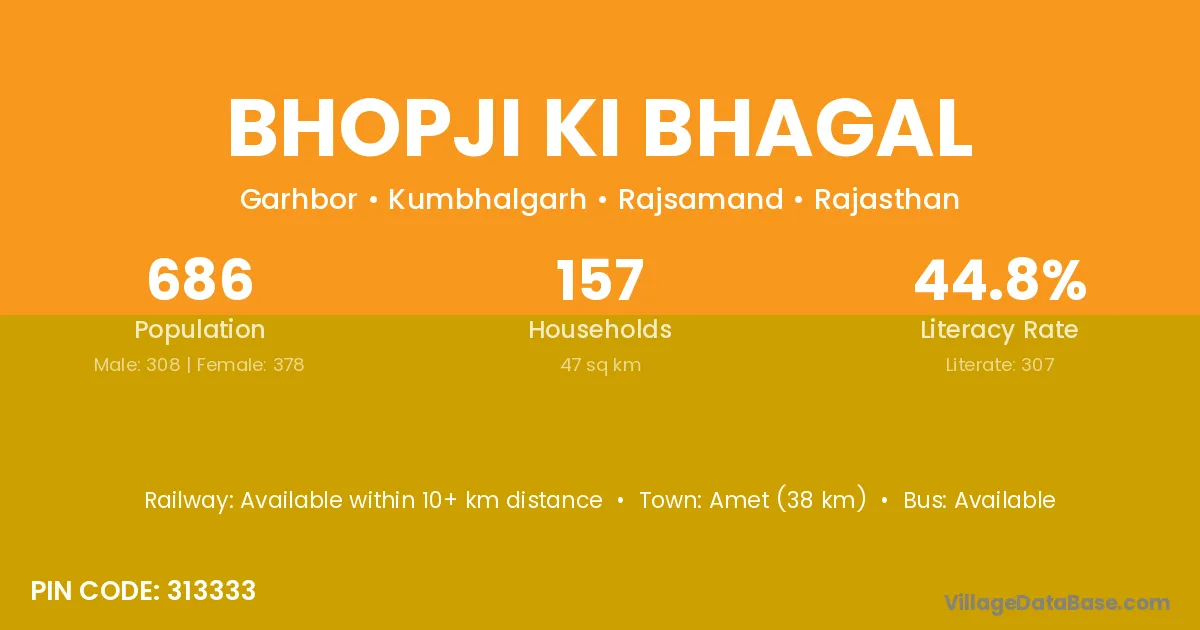 Bhopji Ki Bhagal village has a total population of 686 people, of which 308 are males and 378 are females.