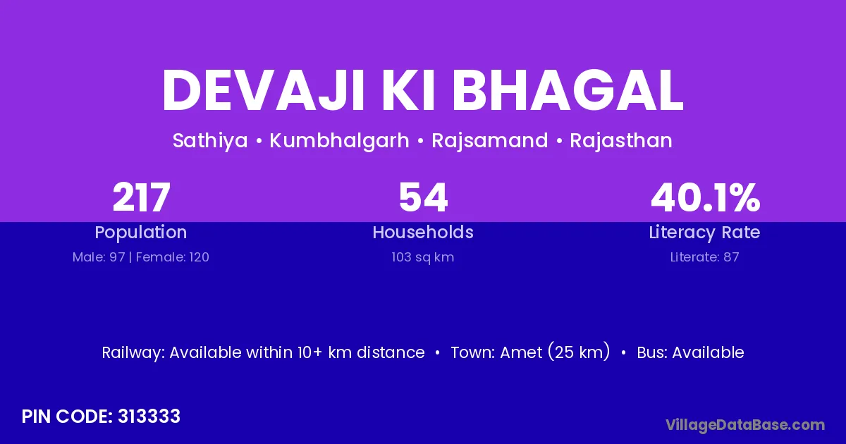 Devaji Ki Bhagal village has a total population of 217 people, of which 97 are males and 120 are females.