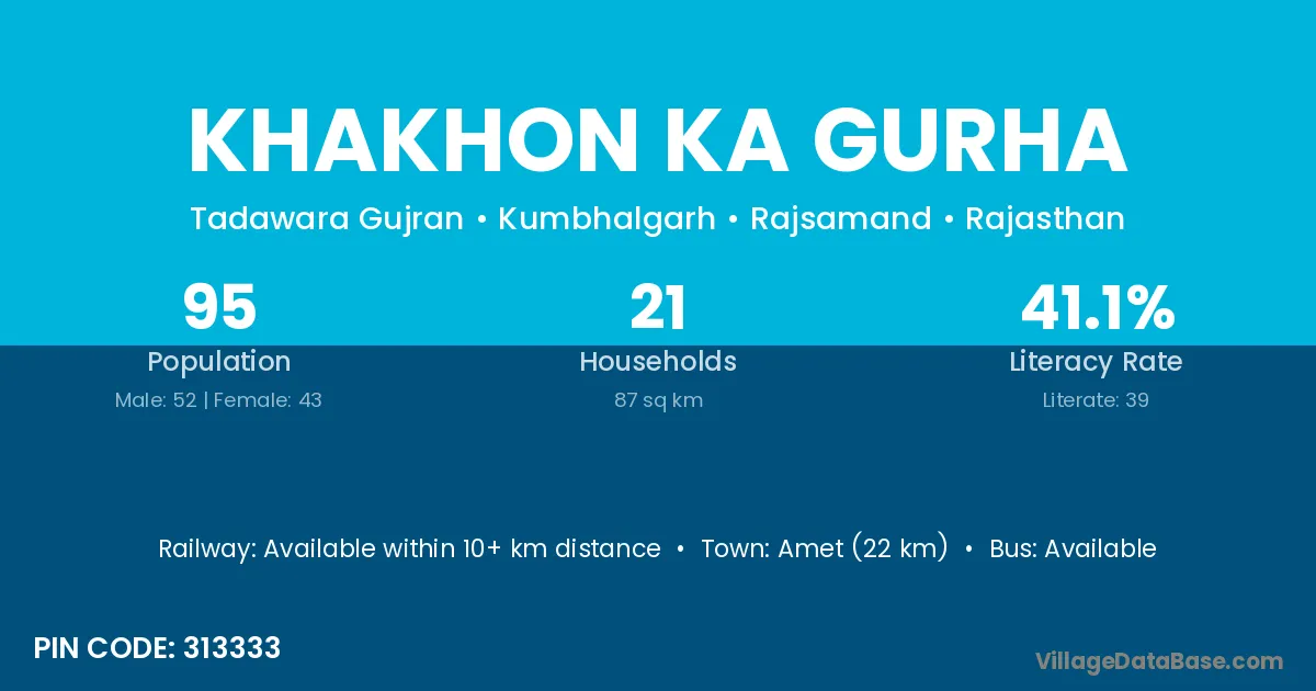 Amet (22 km) is the nearest town to Khakhon Ka Gurha village for major economic activities and is located approximately 22 km away.