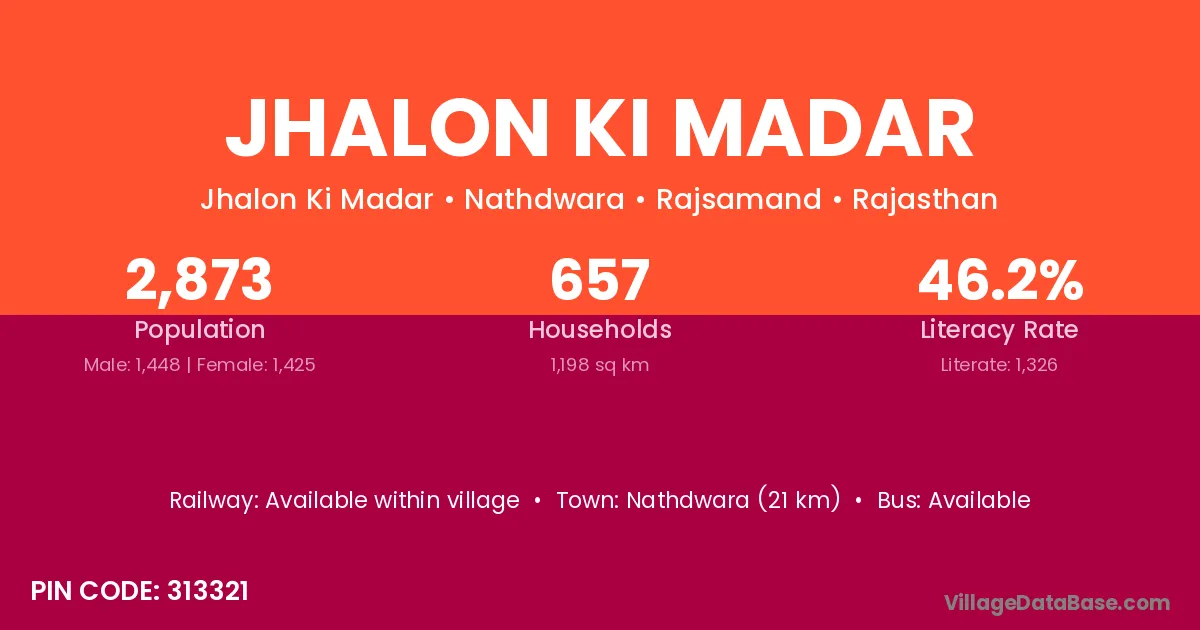 Jhalon Ki Madar village has a total population of 2,873 people, of which 1,448 are males and 1,425 are females.