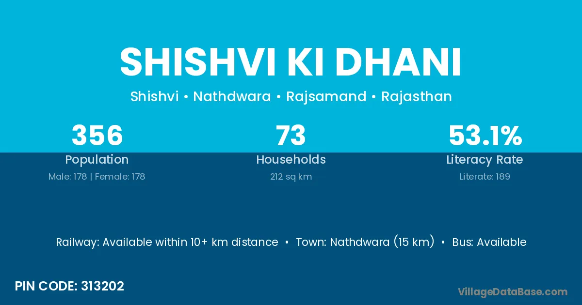 Shishvi Ki Dhani village has a total population of 356 people, of which 178 are males and 178 are females.