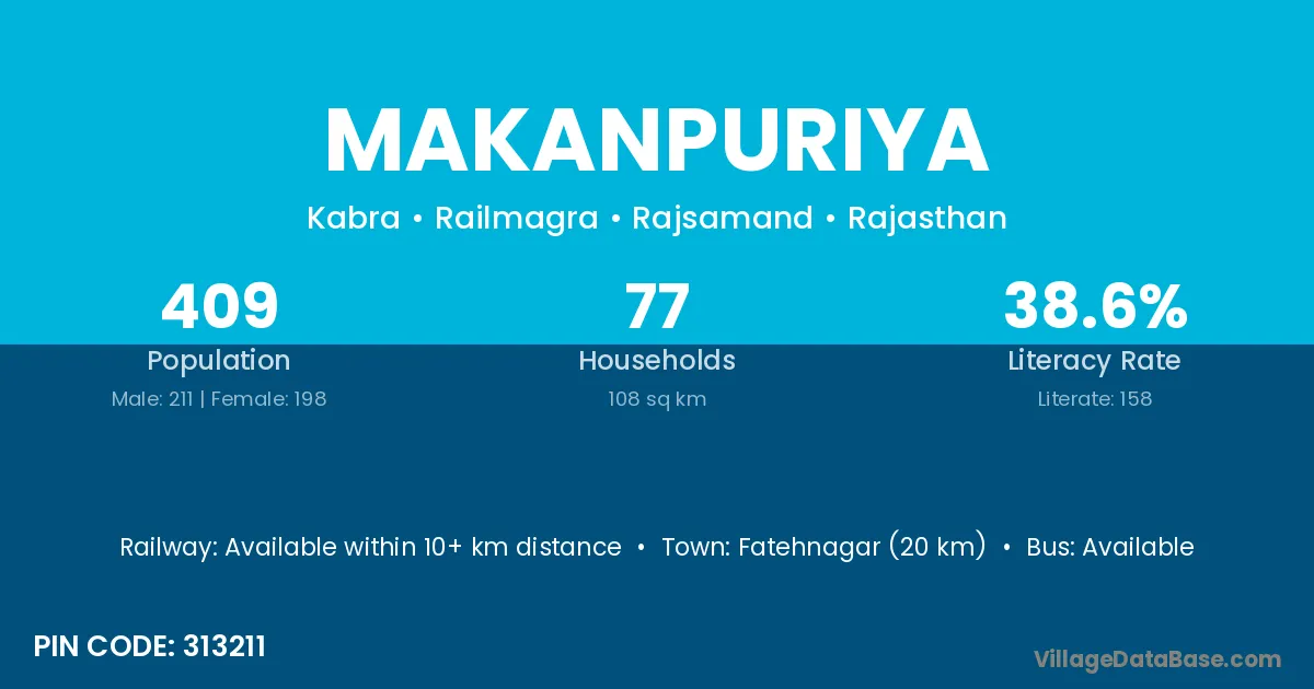 Makanpuriya village has a total population of 409 people, of which 211 are males and 198 are females.