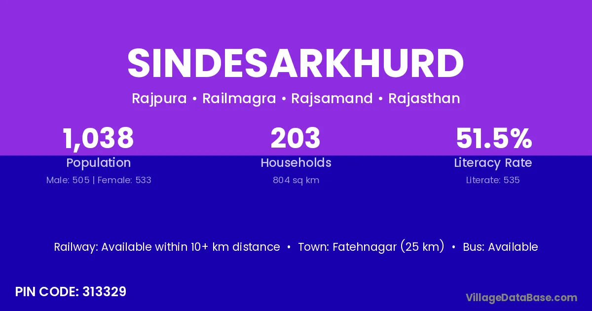 Sindesarkhurd village is located in the Railmagra Tehsil of the Rajsamand district in Rajasthan .