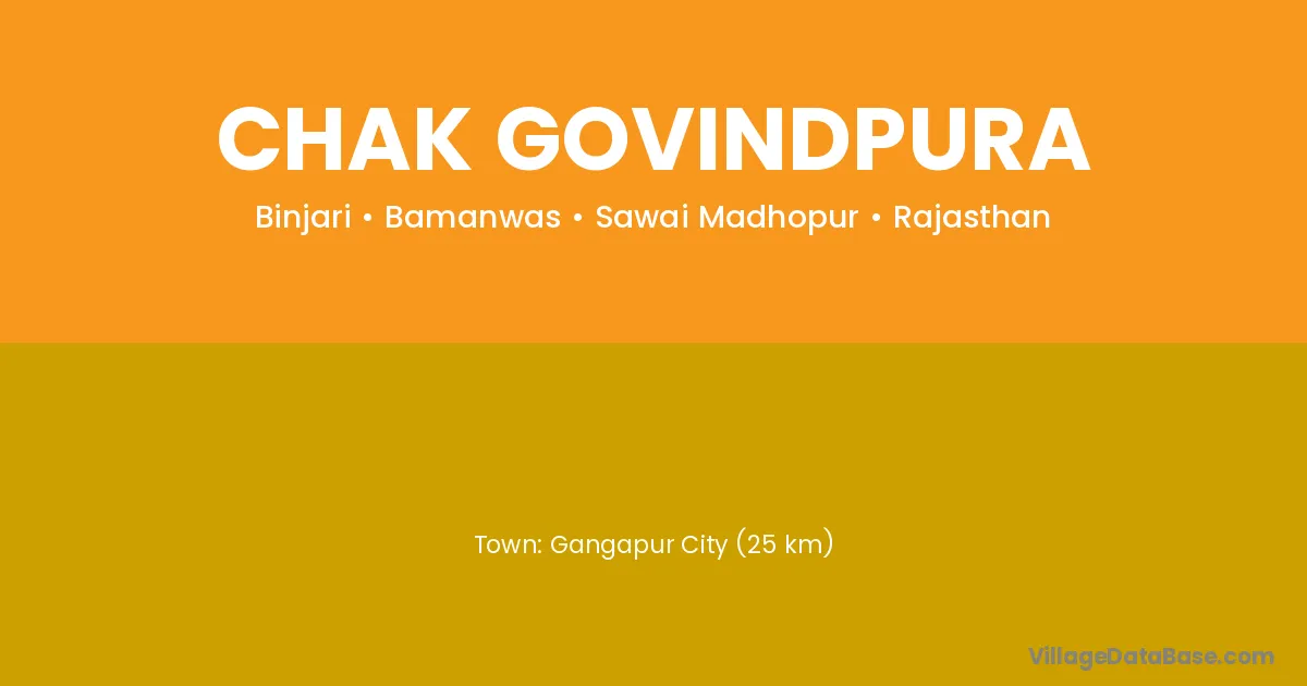 Gangapur City (25 km) is the nearest town to Chak Govindpura village for major economic activities and is located approximately 25 km away.