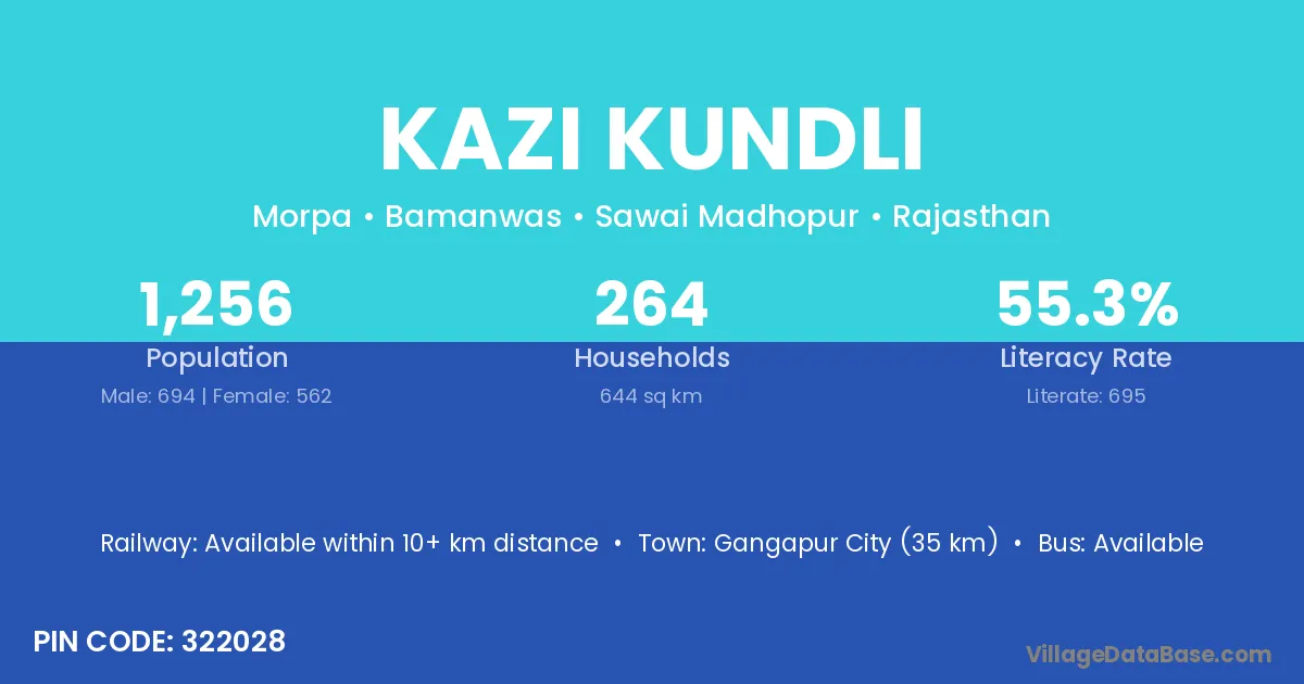 Gangapur City (35 km) is the nearest town to Kazi Kundli village for major economic activities and is located approximately 35 km away.