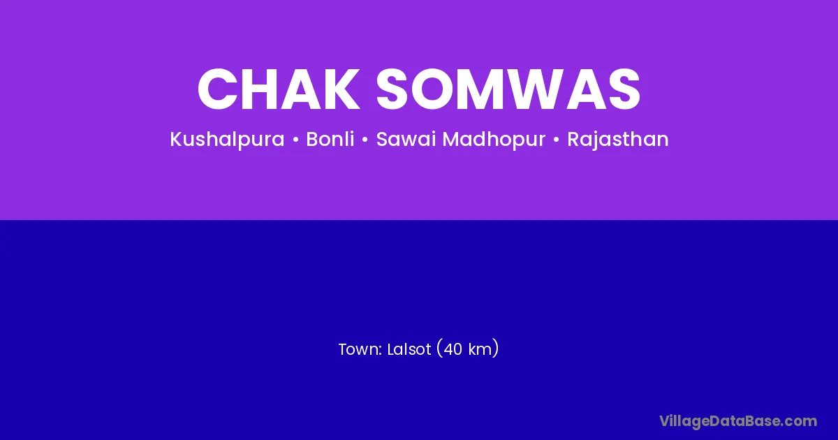 Lalsot (40 km) is the nearest town to Chak Somwas village for major economic activities and is located approximately 40 km away.