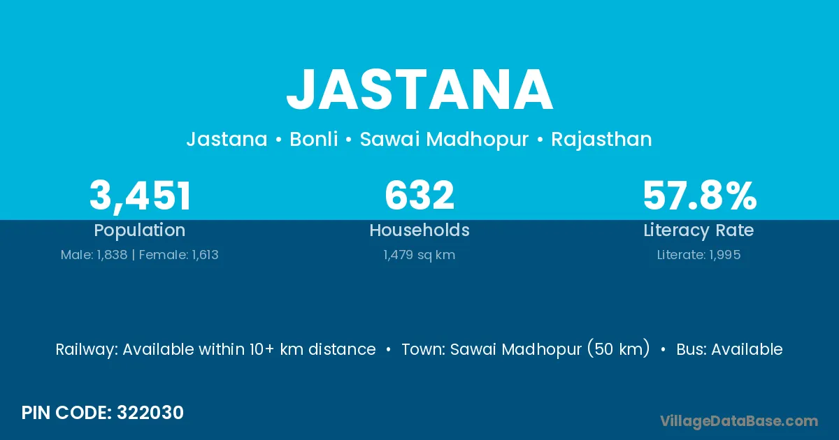 Sawai Madhopur (50 km) is the nearest town to Jastana village for major economic activities and is located approximately 50 km away.