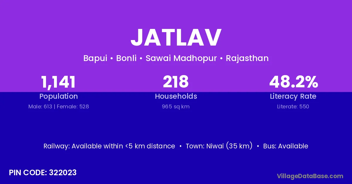 Niwai (35 km) is the nearest town to Jatlav village for major economic activities and is located approximately 35 km away.