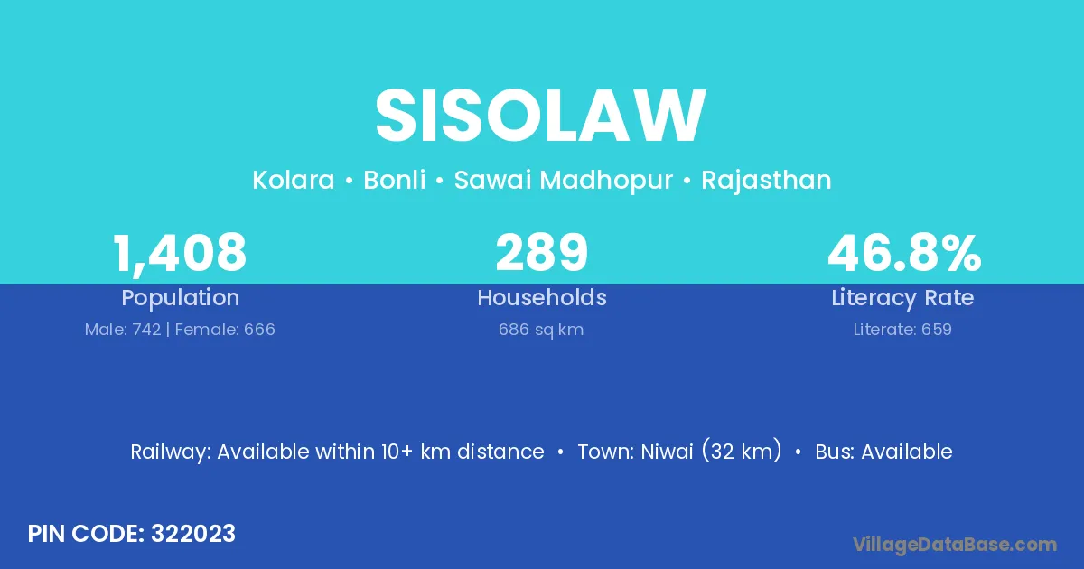 Niwai (32 km) is the nearest town to Sisolaw village for major economic activities and is located approximately 32 km away.