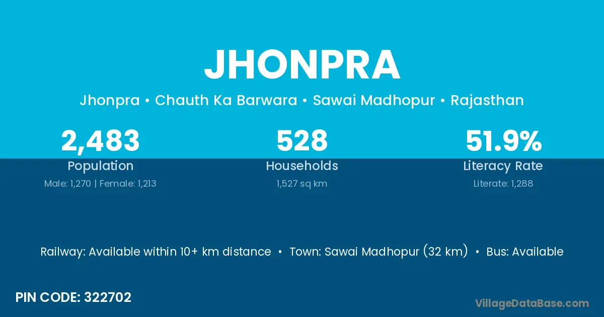 Sawai Madhopur (32 km) is the nearest town to Jhonpra village for major economic activities and is located approximately 32 km away.