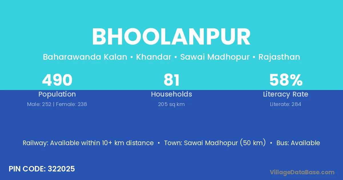 According to Census 2011 information, the village code of Bhoolanpur village is 322025.
