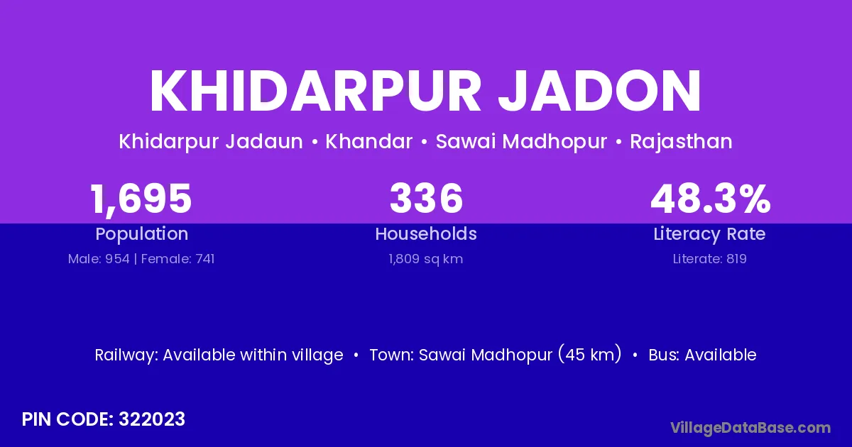 Sawai Madhopur (45 km) is the nearest town to Khidarpur Jadon village for major economic activities and is located approximately 45 km away.