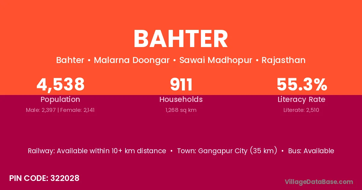 Gangapur City (35 km) is the nearest town to Bahter village for major economic activities and is located approximately 35 km away.