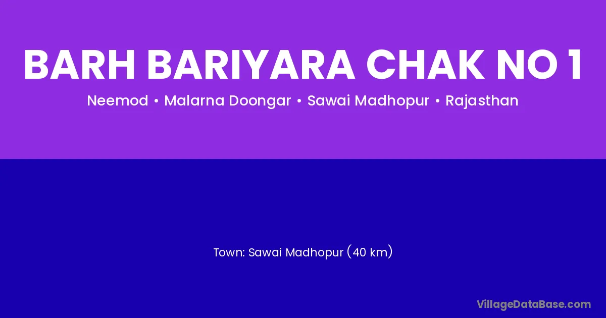 Sawai Madhopur (40 km) is the nearest town to Barh Bariyara Chak No 1 village for major economic activities and is located approximately 40 km away.