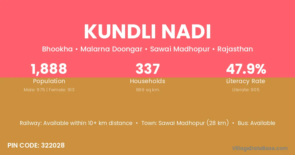 Sawai Madhopur (28 km) is the nearest town to Kundli Nadi village for major economic activities and is located approximately 28 km away.