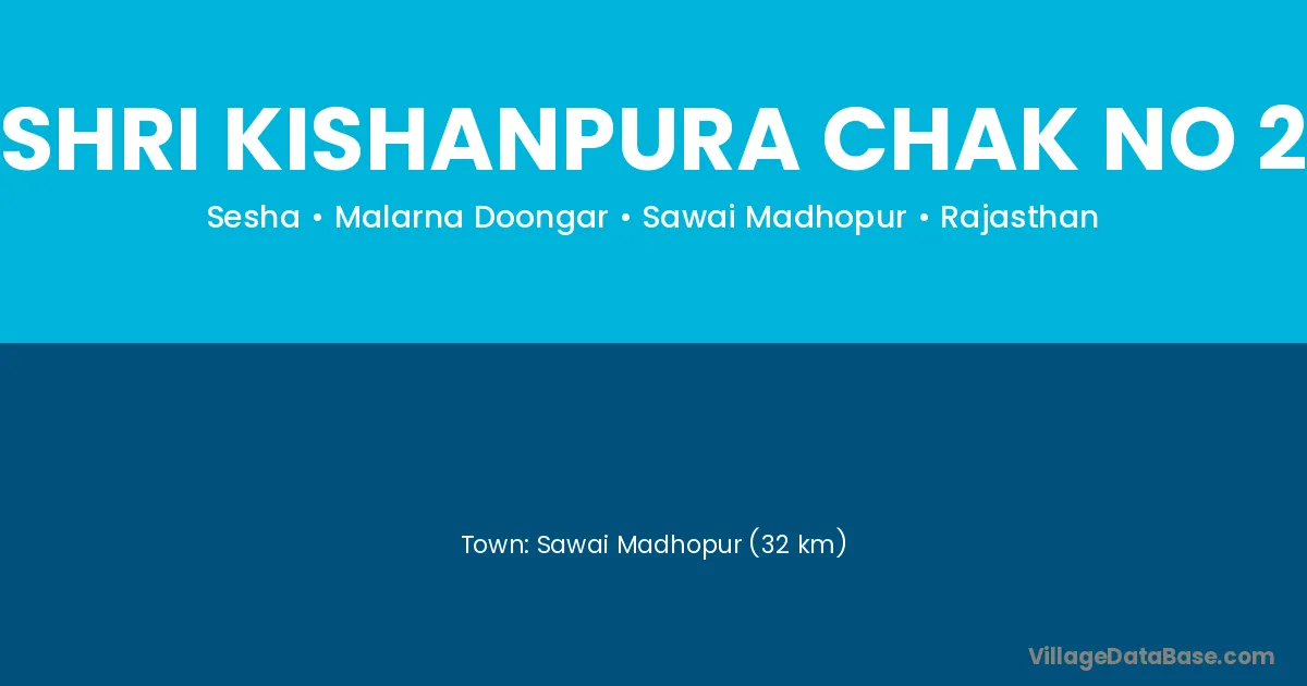Sawai Madhopur (32 km) is the nearest town to Shri Kishanpura Chak No 2 village for major economic activities and is located approximately 32 km away.