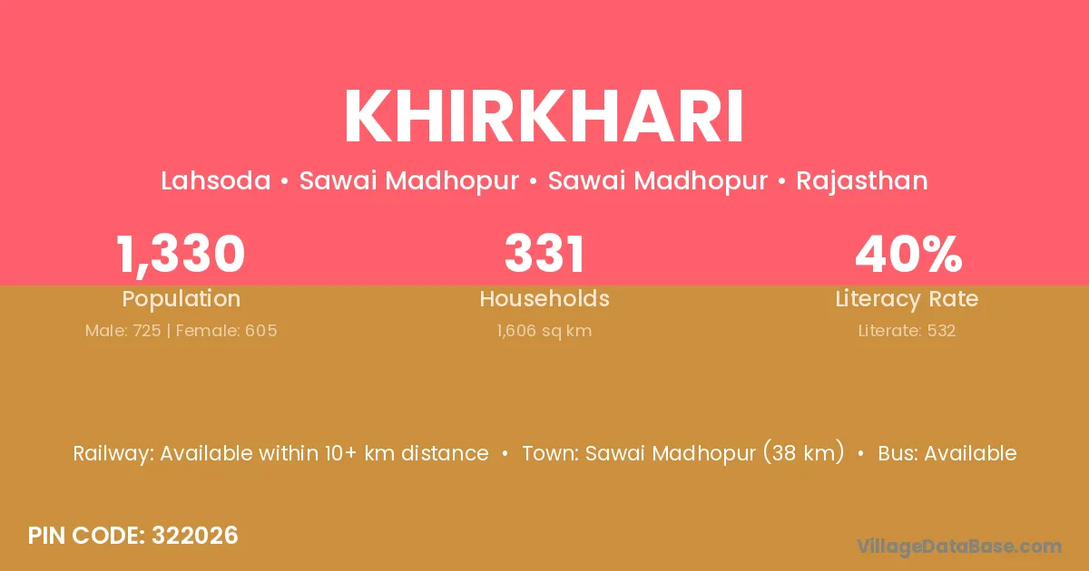 Sawai Madhopur (38 km) is the nearest town to Khirkhari village for major economic activities and is located approximately 38 km away.