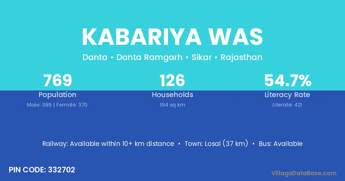 Losal (37 km) is the nearest town to Kabariya Was village for major economic activities and is located approximately 37 km away.