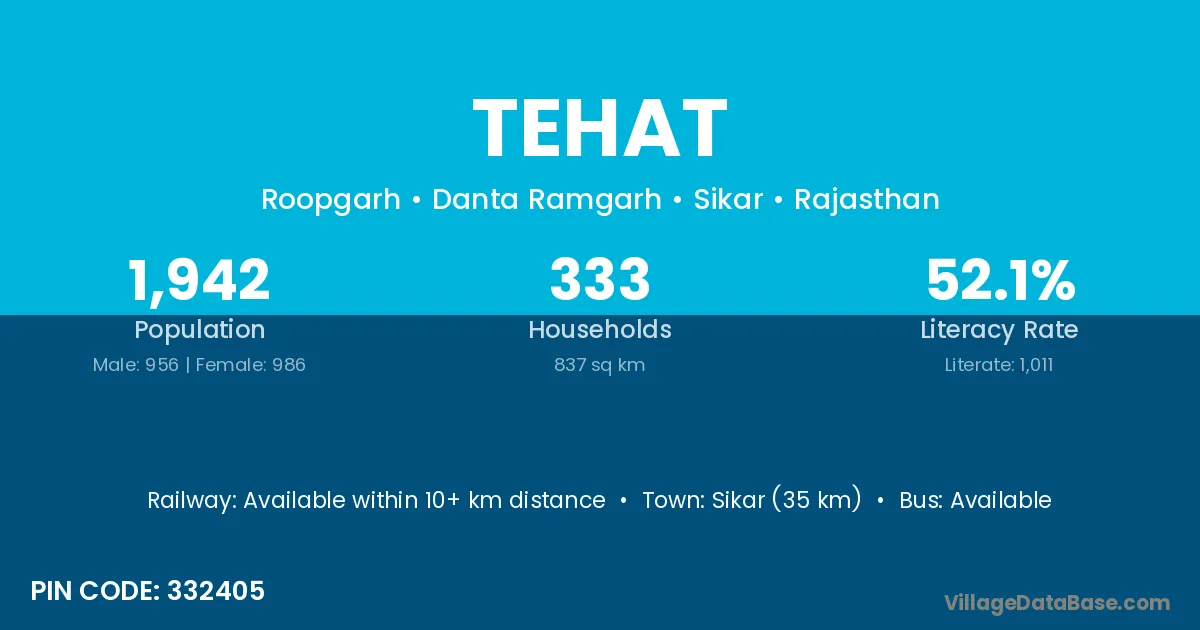 Sikar (35 km) is the nearest town to Tehat village for major economic activities and is located approximately 35 km away.