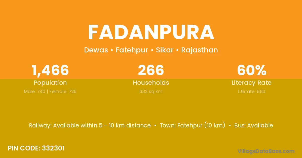 Fatehpur (10 km) is the nearest town to Fadanpura village for major economic activities and is located approximately 10 km away.