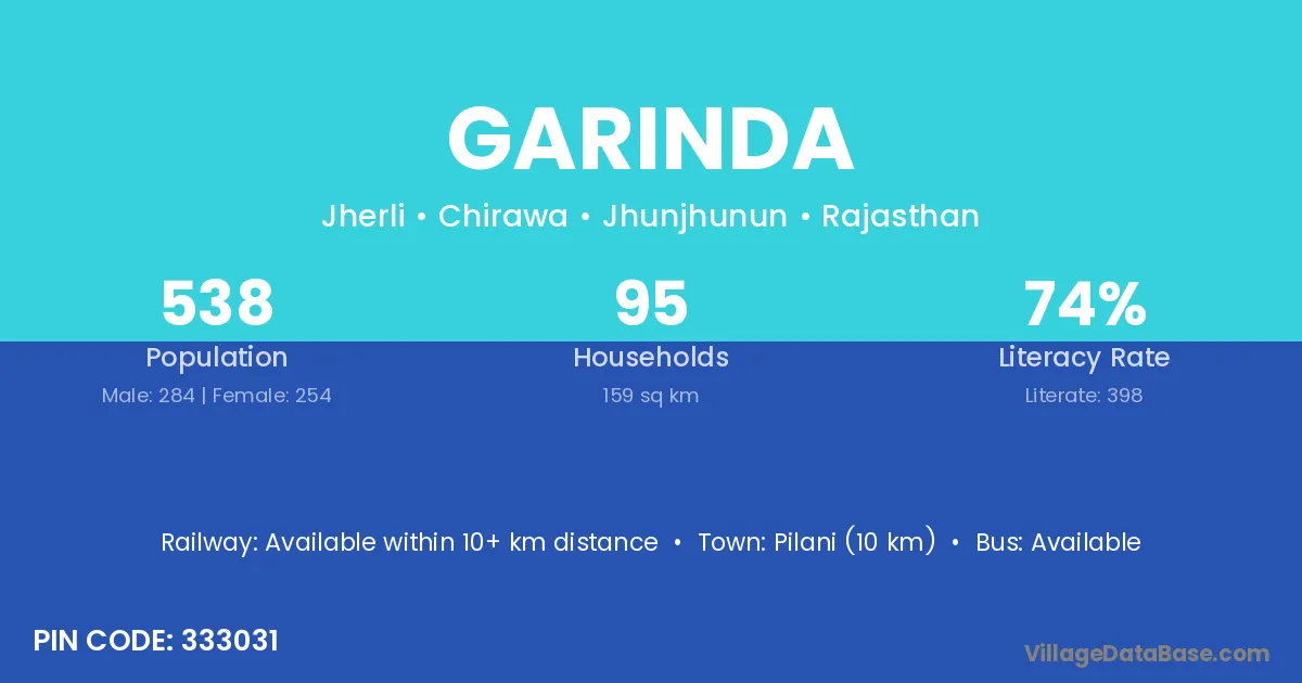 Fatehpur (10 km) is the nearest town to Garinda village for major economic activities and is located approximately 10 km away.