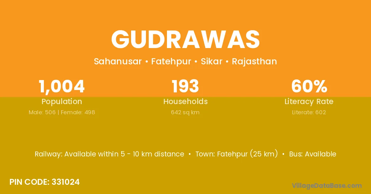 Fatehpur (25 km) is the nearest town to Gudrawas village for major economic activities and is located approximately 25 km away.